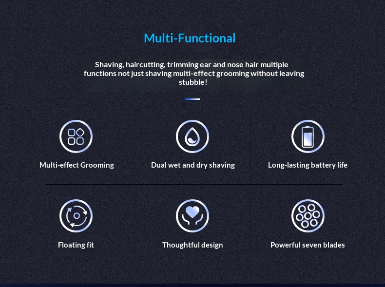 7-blade Electric Rechargeable Professional Hair Clipper Multifunctional Shaver